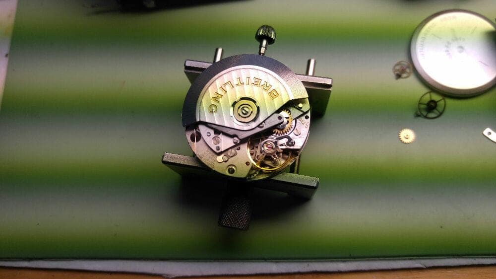 - The movement is removed from the case, disassembled for cleaning, and all parts are inspected as they are removed; gears, jewels, pinions, etc.